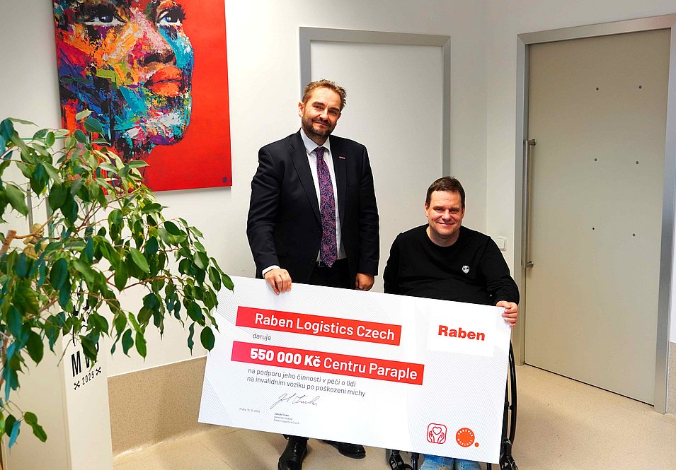 Společnost Raben Logistics Czech i v roce 2025 potvrdila, že společenská odpovědnost a podpora smysluplných projektů jsou nedílnou součástí její firemní kultury. V rámci pokračující spolupráce s Centrem Paraple proběhlo na půdě centra 3.2.2026 slavnostní předání šeku na finanční dar za rok 2025, a to ve výši 550 000 Kč.